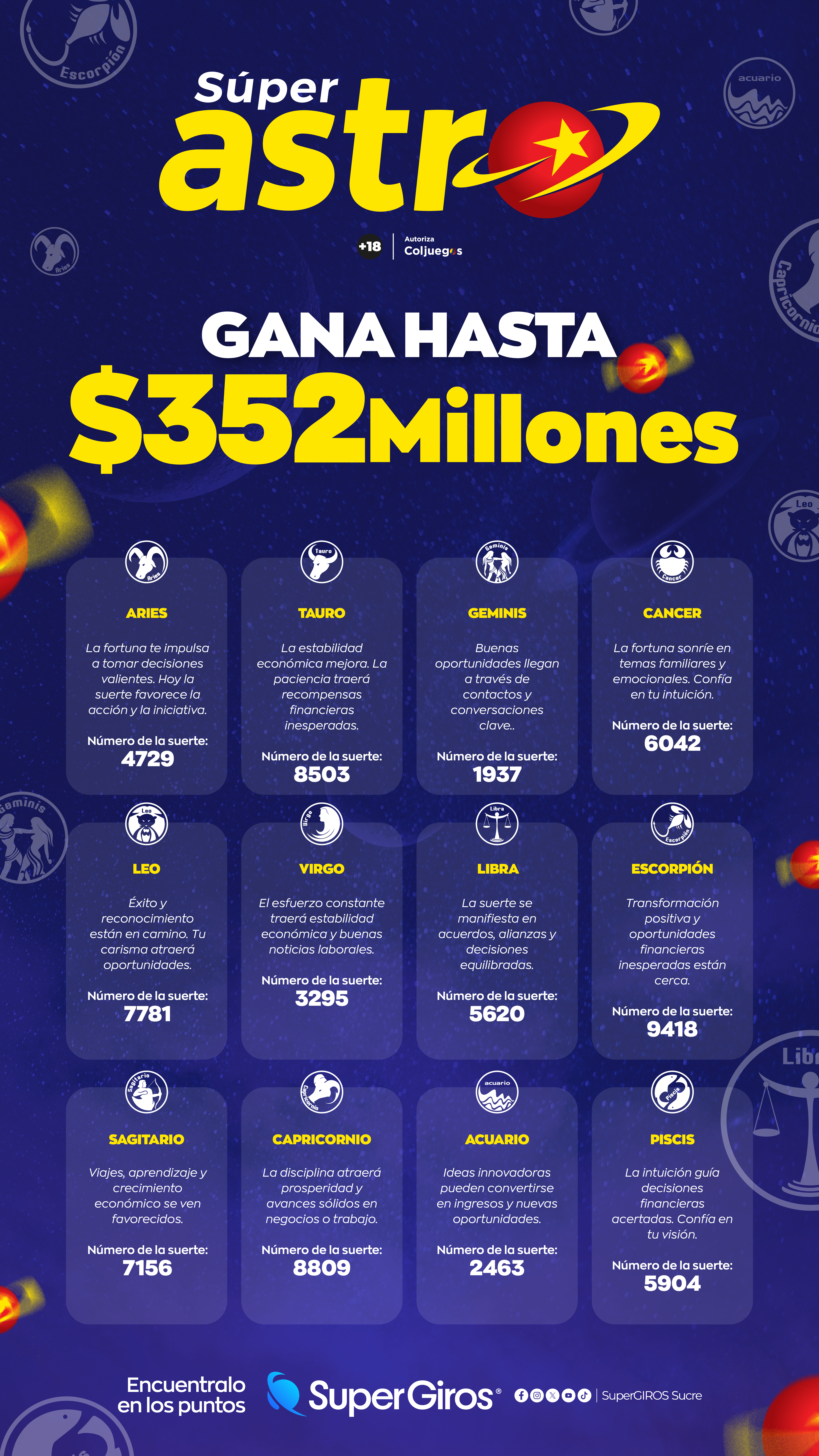 Compra Super Astro desde $2.000 en puntos físicos o en la App SuperGIROS y participa por 2 portátiles Lenovo y 3 tablets Samsung. Vigencia del 01 de febrero al 31 de marzo de 2026. Sorteo 07 de abril en Sincelejo. ¡Juega, participa y gana! 🚀📚